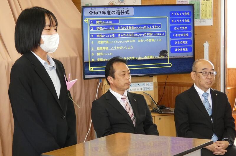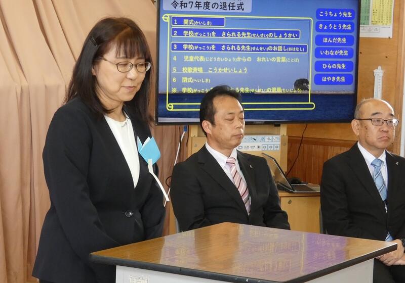 分校関係では6人の先生方が、転出されます。そのあいさつの様子。
