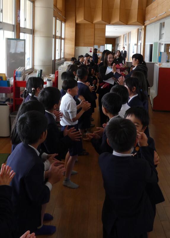 涙と笑顔とが、先生方を取り囲みます。感動の場面です。