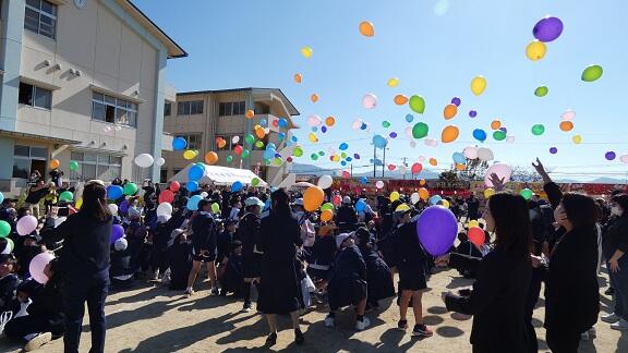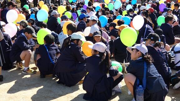 色とりどりの風船は、空高く舞い上がっていきました!