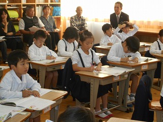本日は、午後から1年生・3年生・6年1組が道徳の授業を公開しました。