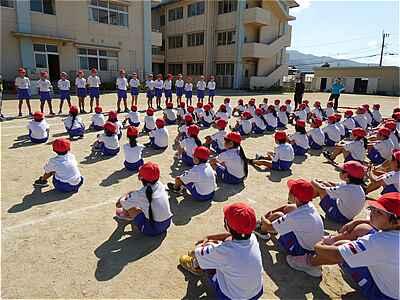 今日は、弥次分校の子供たちも朝から本校に登校する日です。