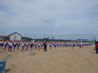 今日は、第2回目の全体練習でした。弥次分校の児童も参加して本番に近い状態での練習です。日差しがあるとやはり暑く感じます。