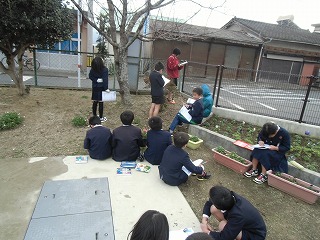 そんな中、冬の植物の様子をスケッチするため、外で学習をしました。