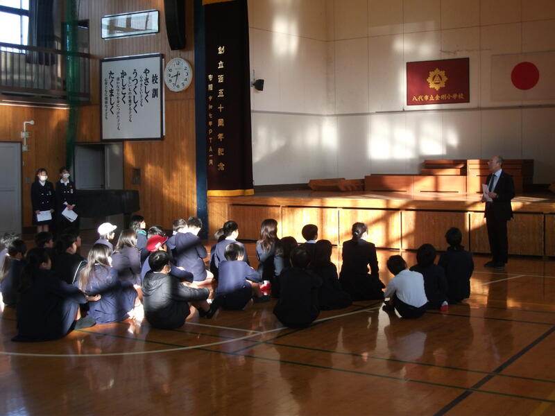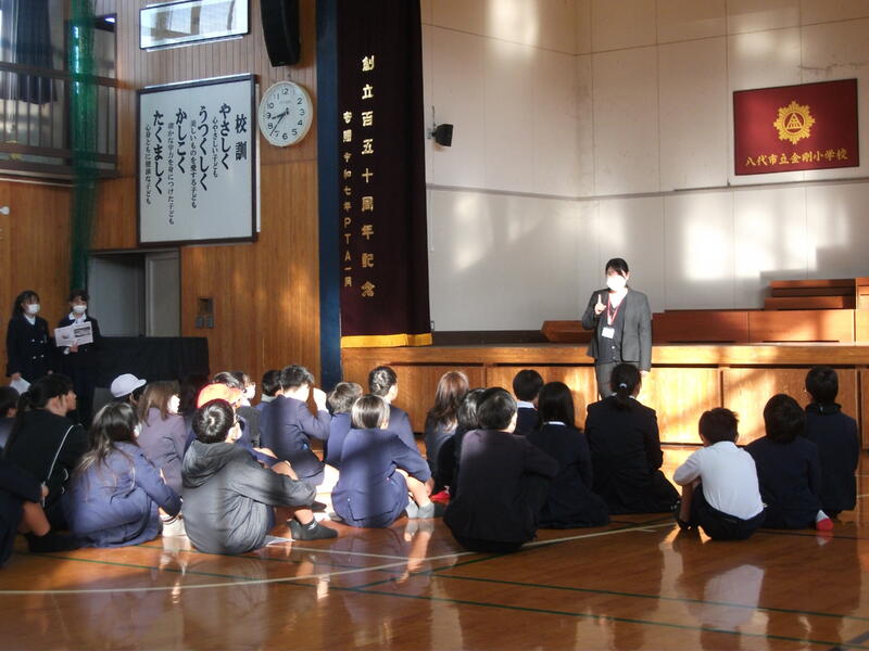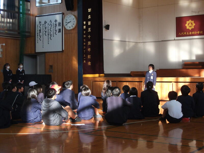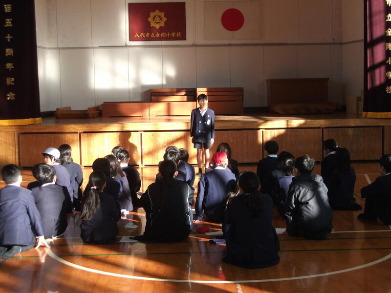 5年生が「集団宿泊教室(11/19~20)・水俣に学ぶ肥後っ子教室」に出かけました。写真は出発式の様子です。