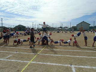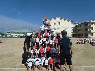 4年生は初めての組体操ですが、大技にも挑戦しています!