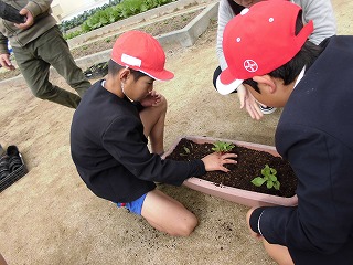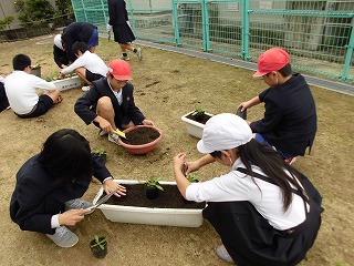 11月28日(火)、縦割り班活動で花の苗植えをしました。