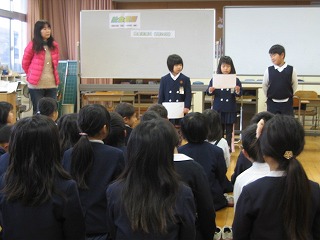 まず、先日給食センターに見学に行った、一年生から見学の感想発表。