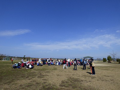 天気には恵まれましたが、風はまだ冷たい水島運動公園。