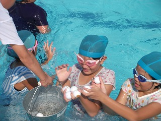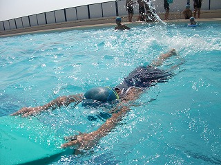洋服を着てプールに入った瞬間、「重い~~~~~~~」と普段とは違う泳ぎの感覚に驚きの声をあげていました。