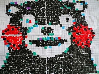 これから作るのは「妖怪ウォッチのモザイクアート」ですが、まず練習として「くまモン」のモザイクアート作りをしました。