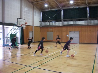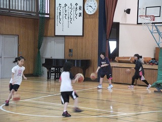 ミニバスケットボール部は、男女いっしょに春休み中も練習をがんばっています。