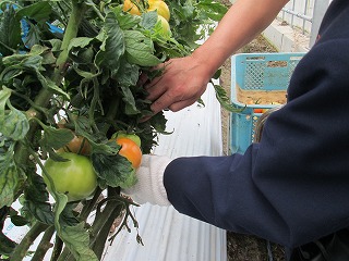 トマトのちぎり方も一人一人丁寧に教えてもらいました。