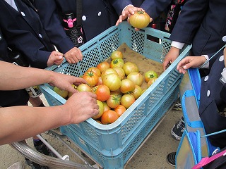 自分たちがちぎったトマトを見ながら、少しでも傷がつていると