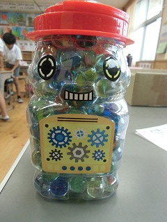 みんなでがんばった分だけ、ビー玉を「ビーロボット」に貯金しています。