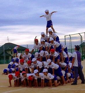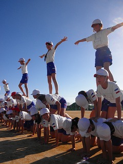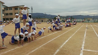 4年生は初めての組体操ですが、大技にも挑戦しています!