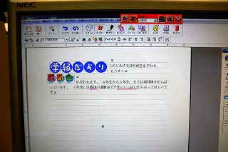 文字の変形や強調、写真や絵の取り込み、文章作成など練習しました。