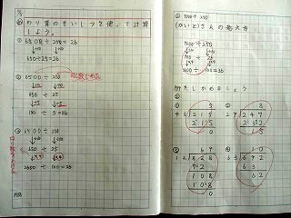 4の1では、「2けたでわるわり算の筆算」の勉強も、いよいよ大詰めです。水曜日には単元末テストをする予定です。