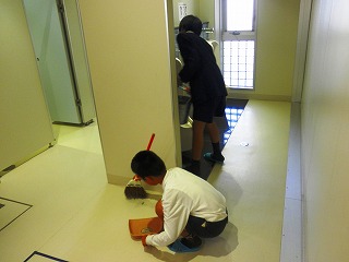 男子が濡れていた廊下を自主的に?拭き取っていました。感心!!