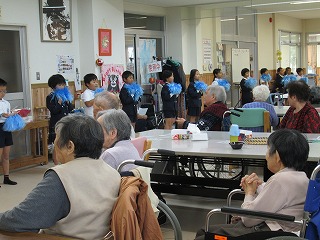 3年1組の子ども達が、揚町の向春苑に行って、おじいちゃん・おばあちゃんと