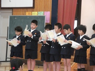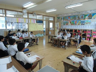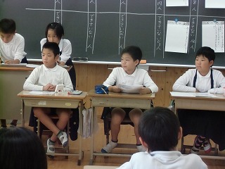 音読では、ねずみや牛の役を決めて読んだり、グループで読んだりといろいろな形式で発表しました。あまり何回も練習はできませんでしたが、一人一人ががんばって読んでくれました。先生方からも「上手でしたよ。」とほめられました。