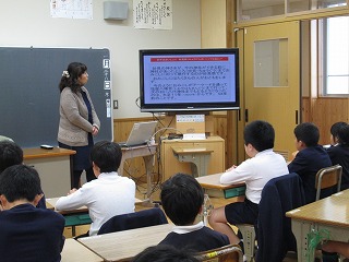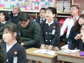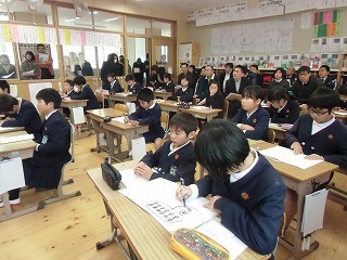 たくさんの先生方に囲まれての授業でしたが、自分の考えをノートに書いたり、校長先生の話をしっかり聞いて答えようとしたり、頑張っていました。