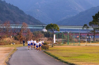 球磨川の河川敷で駅伝大会が行われました。