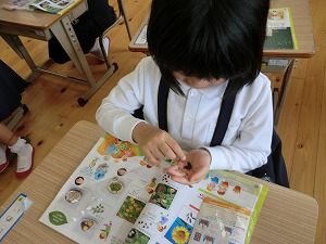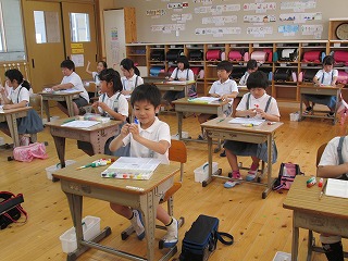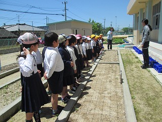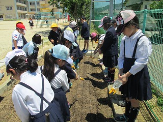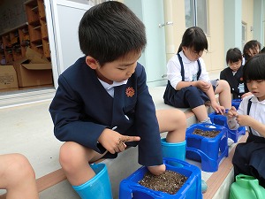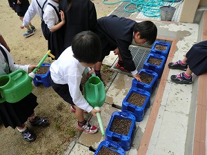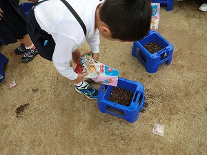 5月9日(月)、一年生は生活科でアサガオの種まきをしました。