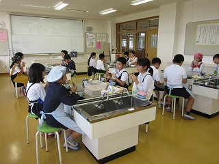 5年2組の子どもたちは、今週初めての家庭科実習に挑戦しました。