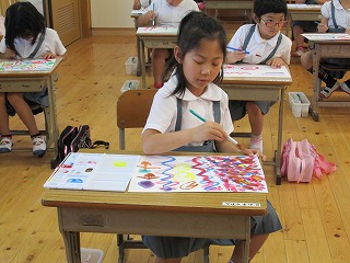 絵の具道具の使い方の話をしっかり聴いて始めました。