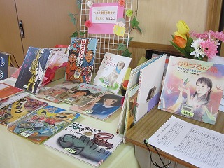 図書室前に過去に童話発表会で読まれた作品が並んでいます。ぜひ手にとって読んでみてください。