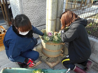 本日午後、金剛小学校正門前で、門松づくりがありました。
