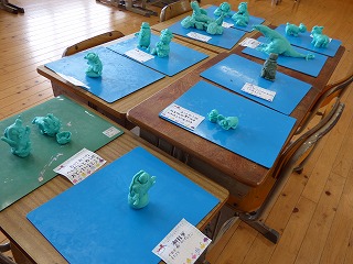 ねん土を丸めたり、こねたりしながら、動物のいきいきとした動きを想像力を働かせて作りました。