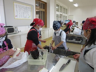 3年生だけで味噌汁を作れるかな・・・と心配する担任をよそに、テキパキと作業を進めます。事前に家で練習してきた人もいて、包丁の使い方も上手でした。