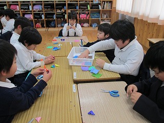 をします。それに向けて、教室を飾るために飾り作りをしました。