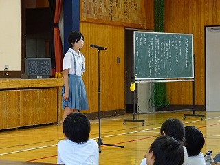 低学年、中学年、弥次分校、高学年、でそれぞれの代表になった人たちによる発表です。