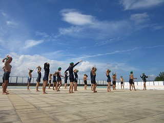 朝から汗をいっぱいかいて練習します。朝ご飯をしっかり食べて、水筒、タオルを忘れずに持ってきてください。