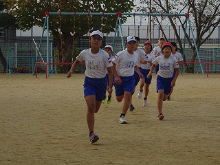 5・6年生は、今、朝の時間を使って陸上トレーニングに取り組んでいます。