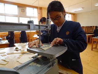 電動糸のこぎりを使って板を切って形作っていくのですが、