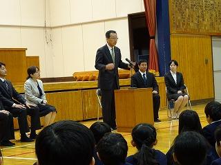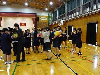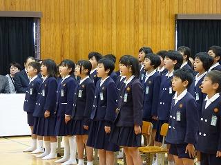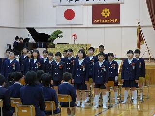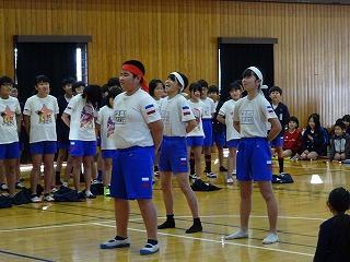 5年生は、中学校でもがんばれ!という気持ちをこめて、即席応援団による「エール」