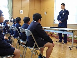 これから自転「車」で登校することになります。急な飛び出しをしないこと、安全確認を必ずすること、この2つのことをしっかり守って、事故のないようにしてください。とのお話がありました。