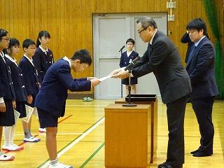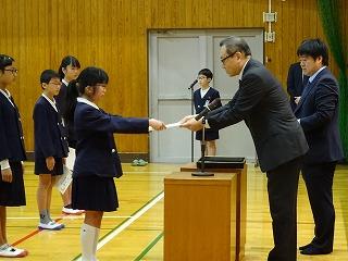 校長先生から、委員長へ“任命状”を渡していただきました。