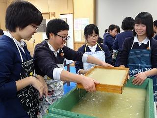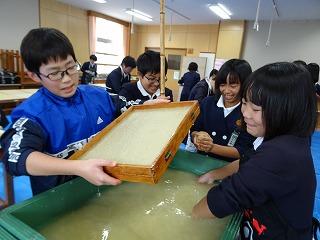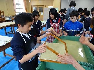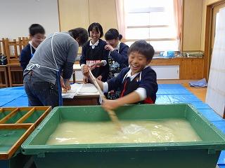 たくさんの知恵と手間がかかって1枚の紙ができることに感動した6年生。
