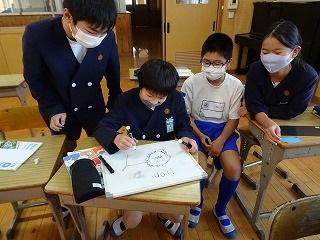 ALTの先生の発音を聞いて、そのイラストをグループ毎に描くゲームです。