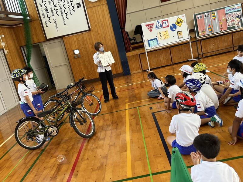 5月23日、交通安全教育講習員や市民活動政策課、八代市安全協会の指導者、計6名の方々に来校いただき、交通教室を開催しました。写真は3年生のようすです。今年は検定試験がありますね。それまでには自転車に乗れるようにしておきましょう!