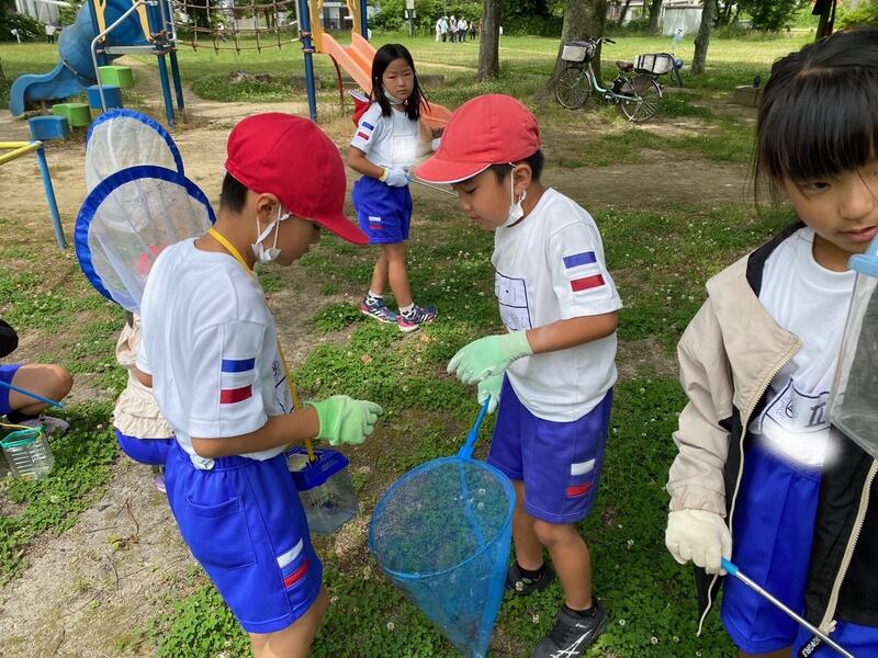 5月26日、2年生は植柳新町南児童公園へ出かけ、生活科の学習を行いました。「かにはなぜ泡をふくのだろう?」「この黄色い花は何だろう?」など、たくさんの疑問を持つことができました。また、「生き物はあまり好きではなかったけれど、実際目にしたら好きになりました」という感想も聞かれました。