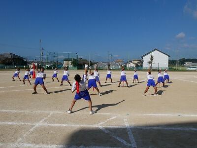 5・6年のダンスリーダーで行っていた朝練ですが、運動場でするようになってから、4年生やリーダー以外の人も参加してくれるようになりました!