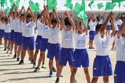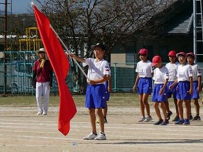 4・5・6年によるフラッグ。最高の演技で、会場に感動を与えてくれました。