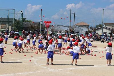 1・2年生の玉入れ対決。間の踊りもかわいかったです。