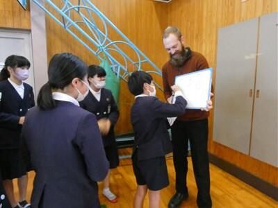 取組を続けているうちに、互いに声を掛け合う姿が見られるようになってきました。弥次分校でも同じ取組を進めていますが、弥次分校も目標をクリアできた学級があり、今日はアイテムを届けてきました。