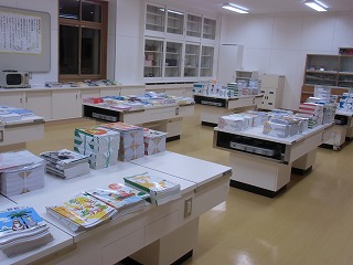 理科室には、点検が終わった教師用の教科書と、新年度の教材やテストなどが